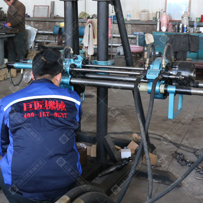 5.采用轻型给进架,夹持器夹紧,动力头回转钻进,油缸拉送钻具,可省掉笨重的钻塔。